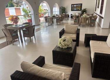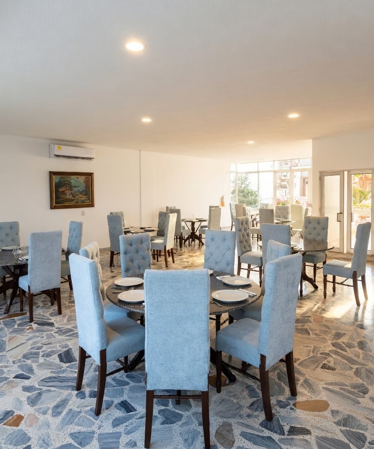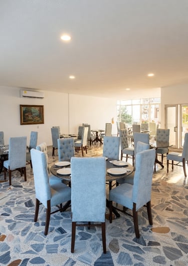 Su diseño permite múltiples configuraciones con mesas redondas o rectangulares, adaptándose a las necesidades de cada ocasión. Disfrute de un ambiente distinguido, cómodo y cuidadosamente preparado para brindar el mejor servicio a sus invitados.