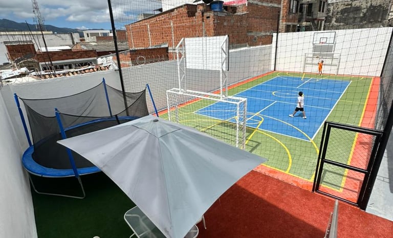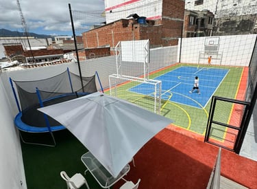Disfruta de nuestra espectacular cancha deportiva techada en azotea, un espacio exclusivo diseñado para que niños, jóvenes y adultos liberen energía sin salir de la propiedad.