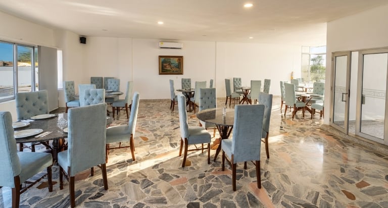 Ven al Restaurante del Club: mesas listas, platos sabrosos de la casa y un ambiente cálido con luz natural y decoración sencilla pero acogedora. Perfecto para cualquier ocasión.
